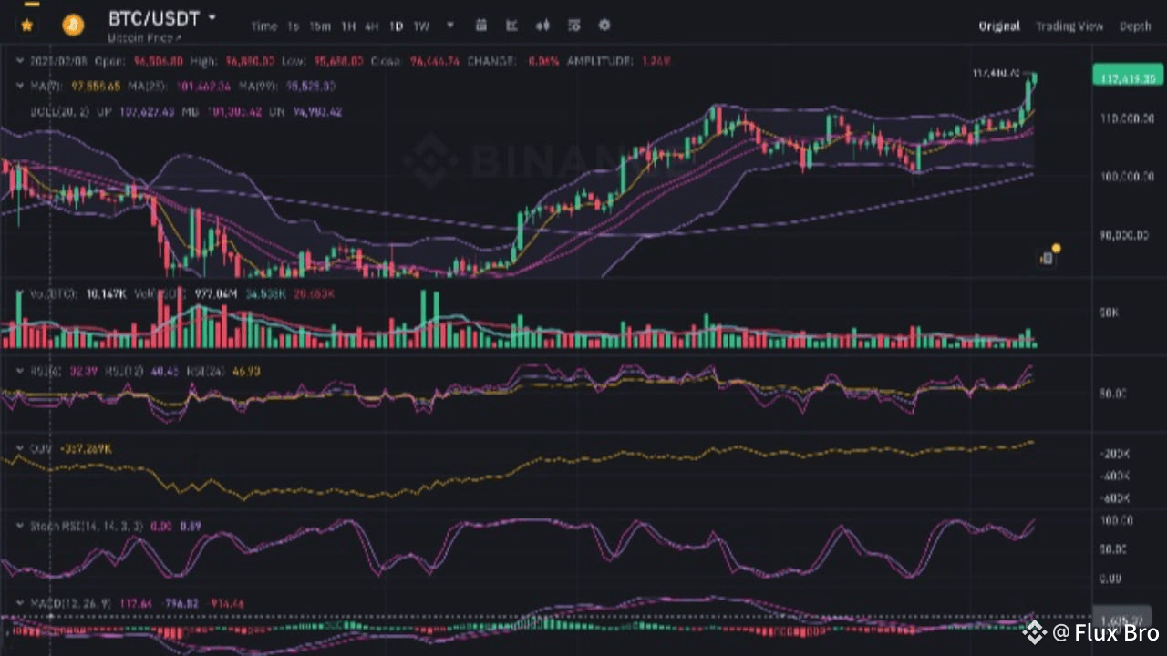 BTC è recentemente uscito da un range di consolidamento (~$105K–$112K).