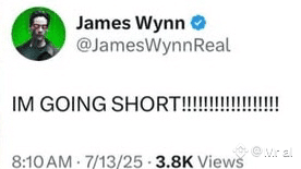 Dopo aver subito perdite consecutive per un totale di centinaia di miliardi, James Wynn ha fatto un ultimo post: "VADO SHORT" il 13 luglio 2025. Poco dopo, ha disattivato il suo account @JamesWynnReal. Il suo portafoglio on-chain ora detiene solo $10.176, segnando una fine silenziosa per uno dei trader più sensazionali dell'anno.