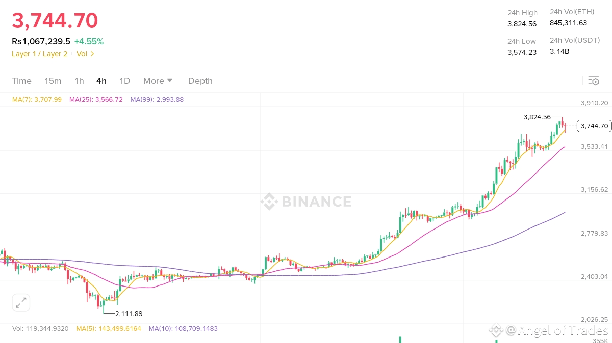 > Segui in tempo reale: Guarda MA(7) (3.708) come un falco. Rottura = accelerazione del trend → aggiungi 20% di posizione.