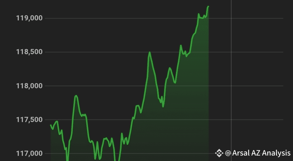 Il massimo intraday è 119184,0 USD e il minimo intraday è 116751,0 USD.