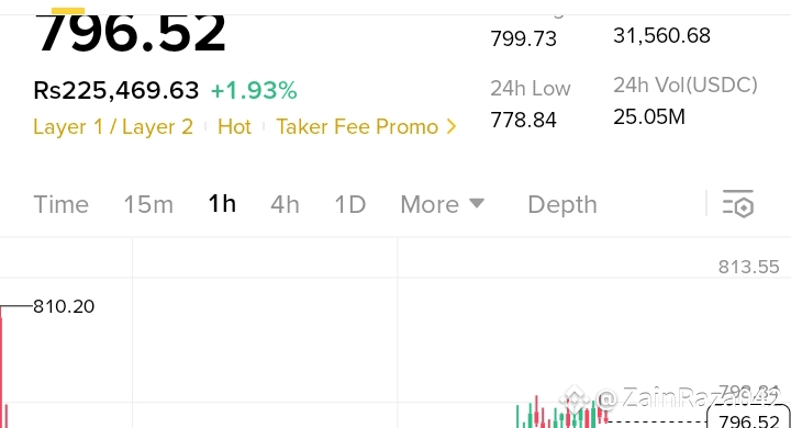 La coppia BNB/USDC sta mostrando un forte momentum rialzista mentre sale a $796.52, riflettendo un solido guadagno giornaliero di +1.93%. Con il prezzo in aumento di oltre l'8.95% questa settimana e del 23.33% nell'ultimo mese, i trader stanno osservando da vicino un potenziale breakout.