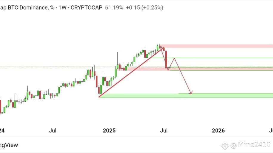 ⏳ Finché BTC.D rimane al di sopra di questo livello chiave del 60–61%, è improbabile che assisteremo a un forte breakout delle altcoin o a una mini-stagione delle altcoin. Invece, le altcoin potrebbero sperimentare un'azione di prezzo laterale o piccoli ritracciamenti, privi di una direzione chiara e di un forte slancio.