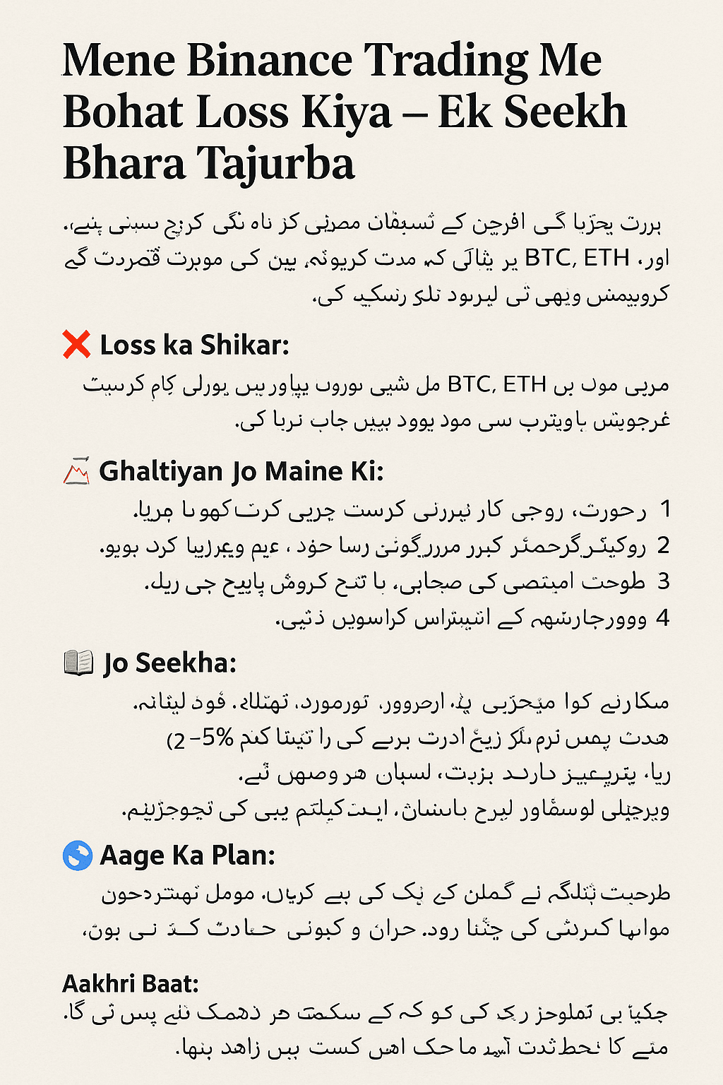 Pensiero finale: se hai affrontato perdite anche tu, non perdere la speranza. Gli errori sono lezioni travestite. Nel mondo delle criptovalute, conoscenza e pazienza sono la vera ricchezza.