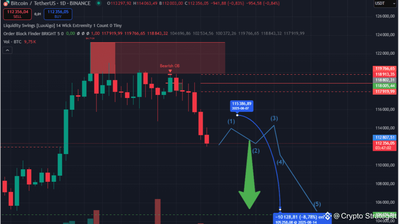Un forte OB ribassista si sta formando nell'area [118K–124K].