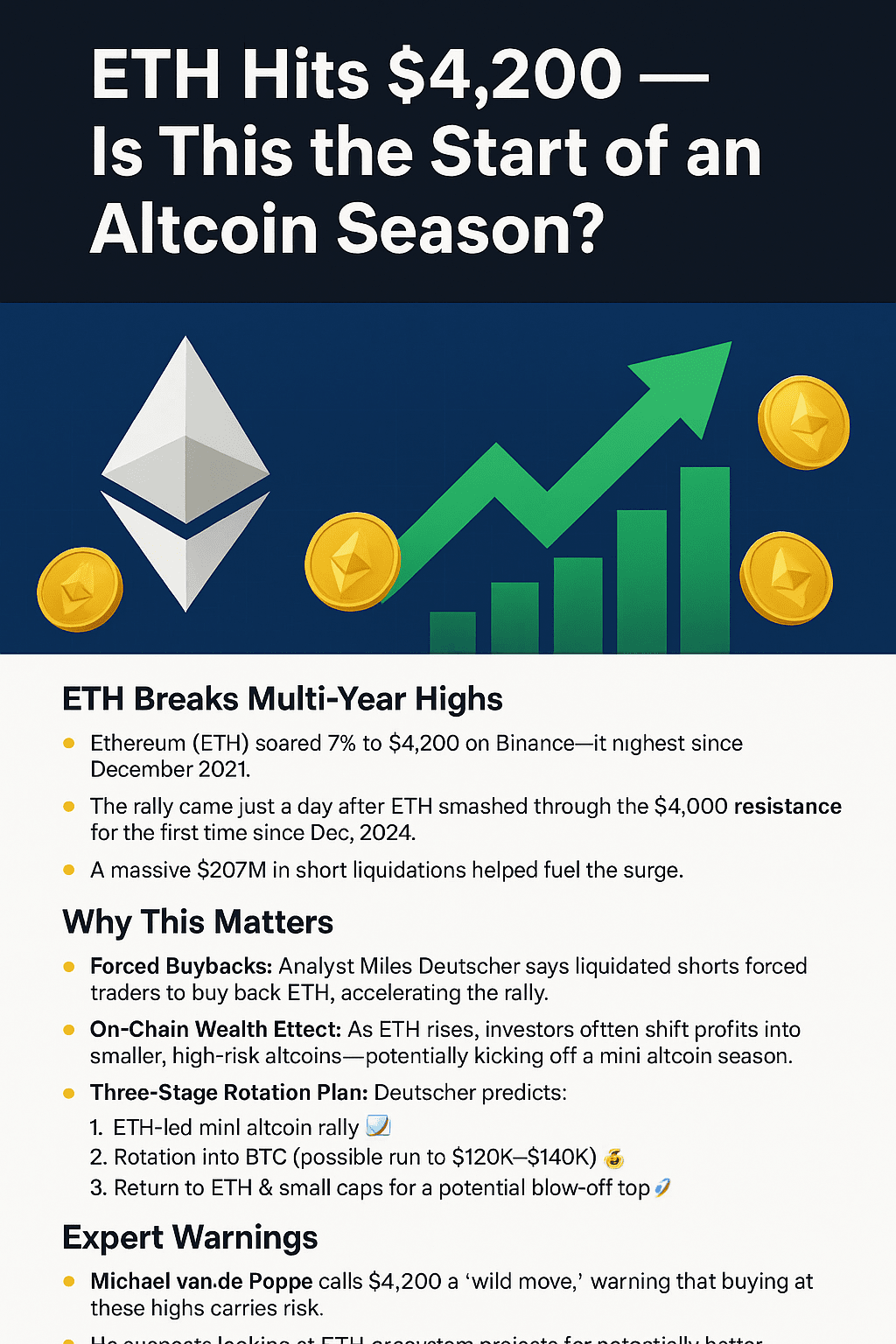 Effetto ricchezza on-chain: Man mano che ETH aumenta, gli investitori spesso spostano i profitti in altcoin piĂš piccole e ad alto rischio â potenzialmente dando il via a una mini stagione delle altcoin.
