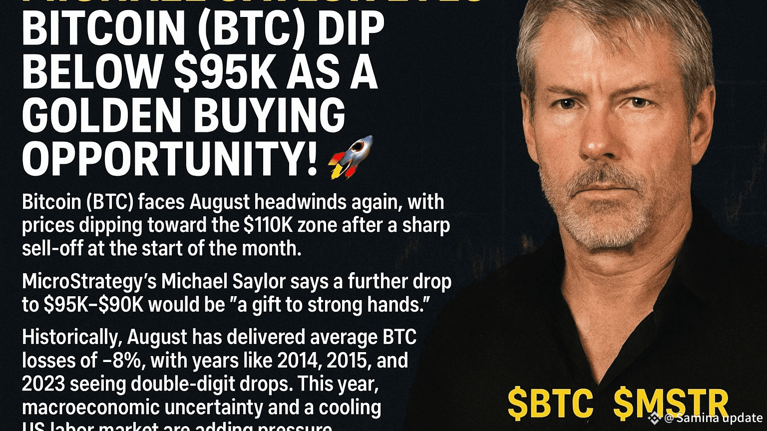 Bitcoin (BTC) affronta nuovamente venti contrari ad agosto, con i prezzi che scendono verso la zona dei $110K dopo un forte sell-off all'inizio del mese. Michael Saylor di MicroStrategy afferma che un ulteriore calo a $95K–$90K sarebbe "un regalo per le mani forti."