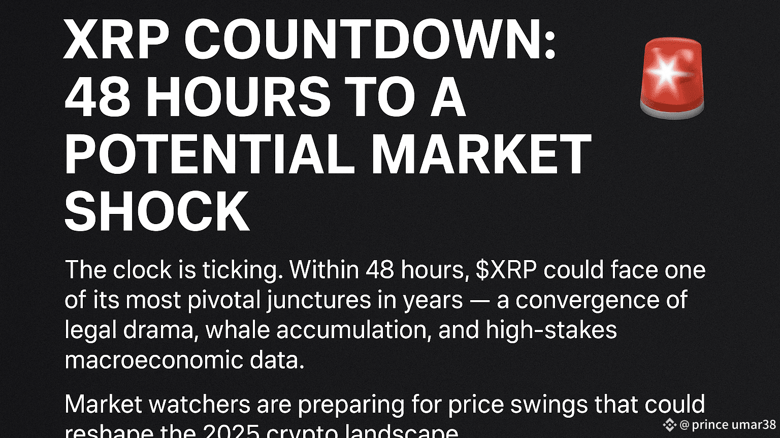 Il tempo stringe. Entro 48 ore, $XRP potrebbe affrontare uno dei suoi momenti più decisivi degli ultimi anni — una convergenza di dramma legale, accumulo di balene, e dati macroeconomici ad alto rischio. Gli osservatori del mercato si stanno preparando a fluttuazioni di prezzo che potrebbero rimodellare il panorama cripto del 2025.