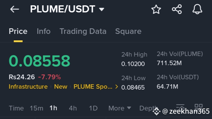 Dopo un forte rally da $0.0720 → $0.1035, $PLUME sta mostrando chiara debolezza 😮💨