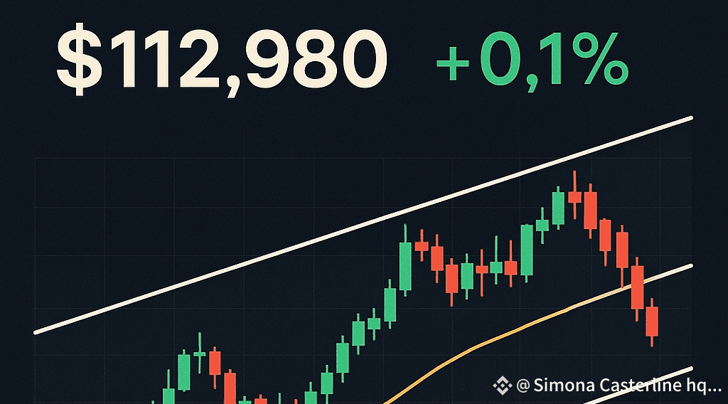 🪙 #BTC $BTC A partire da oggi, Bitcoin (BTC) sta negoziando intorno a $112,980, mostrando un leggero aumento dello 0,1% dopo una settimana di volatilità che ha visto i prezzi scendere dai massimi vicini a $121,000. La criptovaluta di punta rimane all'interno di un canale parallelo in crescita sul grafico giornaliero, ma attualmente sta testando il confine inferiore—intorno a $112K, una zona di domanda storicamente forte.