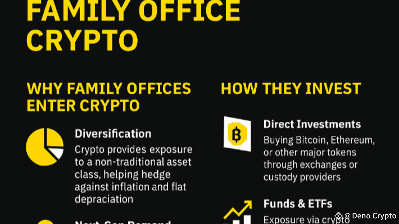 I sondaggi suggeriscono che oltre il 30% dei family office globali detiene già investimenti in crypto o blockchain, e quel numero è in crescita. Con l'espansione della tokenizzazione degli asset del mondo reale (RWA), i family office si stanno posizionando come primi adottanti nell'era della ricchezza digitale.