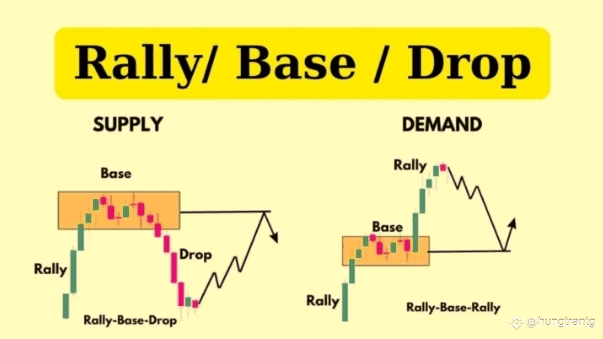 Le zone Rally–Base–Drop (Rialzo–Accumulo–Caduta) o Drop–Base–Rally (Caduta–Accumulo–Rialzo) rivelano aree di grande flusso di denaro dentro e fuori dal mercato. Quando impari a riconoscere queste zone sul grafico di Binance, smetterai di indovinare e inizierai a fare trading seguendo il flusso di denaro intelligente.