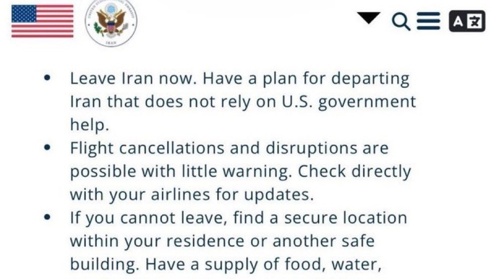 🇮🇹 L'ambasciata degli Stati Uniti esorta i cittadini a lasciare l'Iran ADESSO!