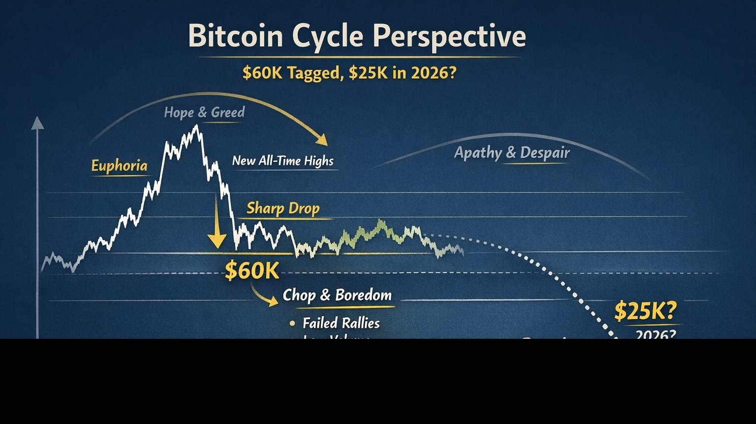 Se il modello del 2026 ~$25K è anche solo vagamente accurato, allora movimenti come $60K non sono la fine del dolore. Fanno parte del processo che ripristina le aspettative. I mercati hanno bisogno di tempo per cancellare la speranza — non solo il prezzo.