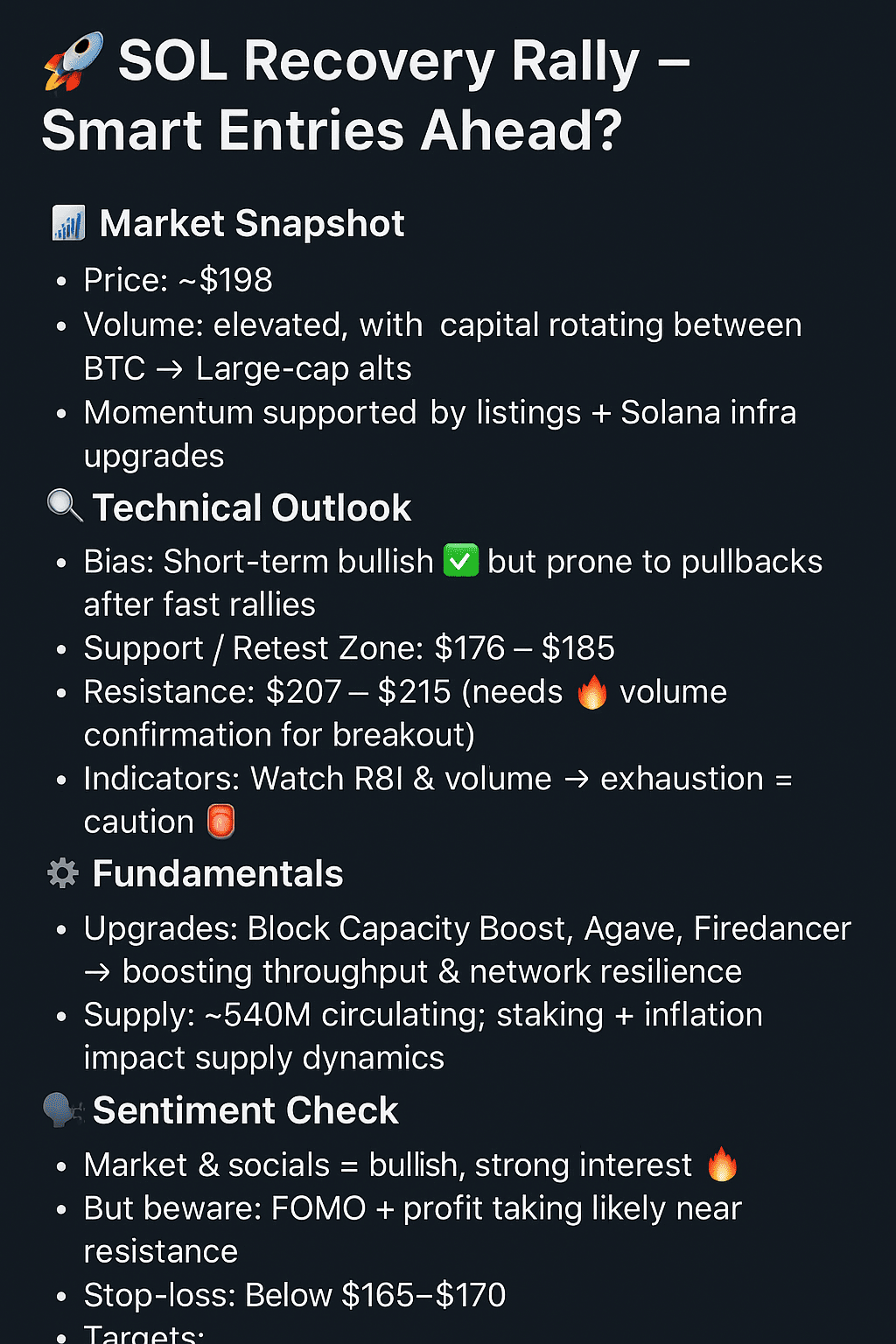 ⚡️Conclusione: Non inseguire $SOL qui. Mossa più intelligente = comprare il retest del dip e cavalcare il prossimo movimento verso l'alto.