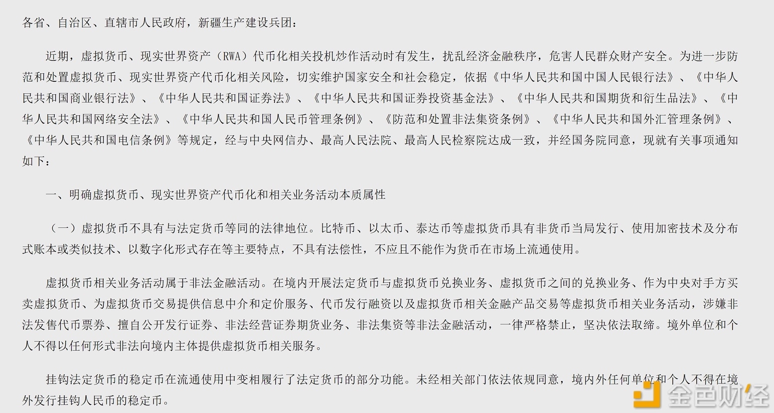 Il documento sottolinea inoltre che le istituzioni e le persone straniere non possono fornire servizi relativi a valute virtuali a soggetti nazionali in alcuna forma, bloccando i canali di arbitraggio normativo tra "piattaforme estere e utenti nazionali", e rafforzando ulteriormente le responsabilità territoriali e transfrontaliere.