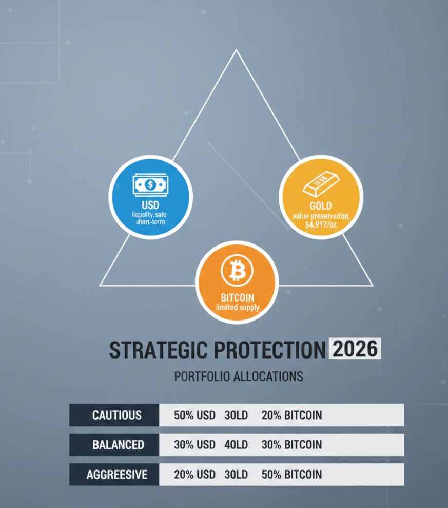 Portafoglio conservativo: 50% USD – 30% Oro – 20% Bitcoin