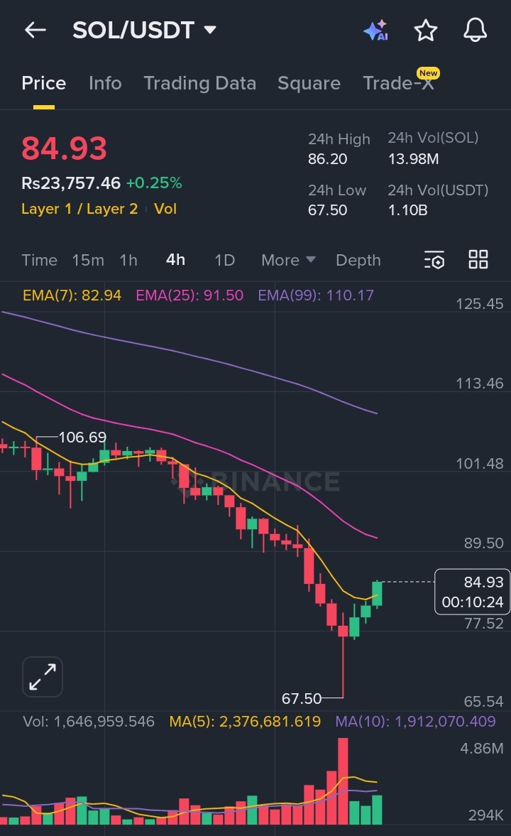 Se #solona hai mantenuto sopra la zona di supporto di $80, una continuazione verso l'area di resistenza $88–$92 è possibile. Tuttavia, il mancato mantenimento di questo livello potrebbe portare a una nuova pressione di vendita. L'attività di volume suggerisce una maggiore volatilità, quindi i trader dovrebbero attendere conferme e gestire il rischio con attenzione.