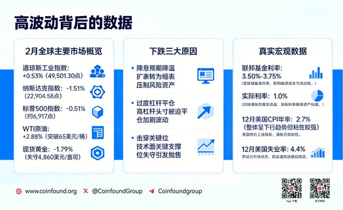 近期市场波动加剧,以BTC为代表的加密货币也难以独身事外,截至2026年2月5日,BTC已从12.5万美元的历史高点下挫至7.2万美元,回撤超过42%,整个加密市场正处于“触底企稳”与“持续崩盘”的关键十字路口。回望本次全球资产的剧烈波动,是由于“宏观政策转向、杠杆踩踏、技术面破位”三重共振引起的,当波动渐息,市场也开始为下一轮机会与窗口重新定价:当前市场表现是短期情绪宣泄后的底部特征,还是新一轮崩盘的开端?曾被市场寄予厚望的加密资产“超级周期”,是否已随流动性退潮而终结?让我们在文章找出答案。