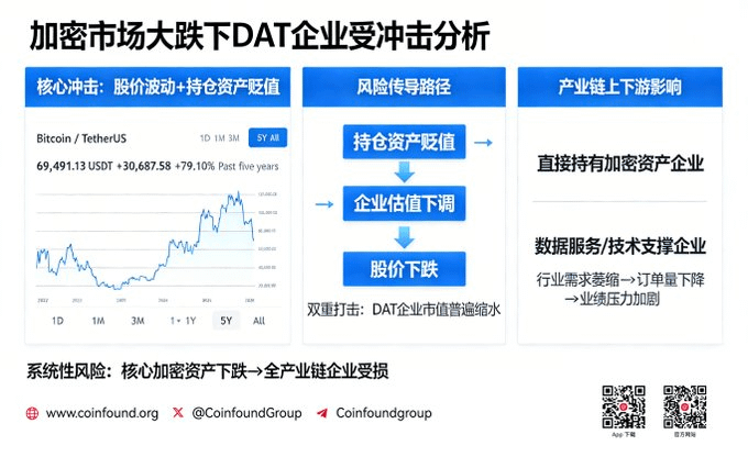 在本次加密市场大跌行情中,以大数据精炼商(DAT)为代表的加密关联企业成为受冲击最为严重的群体之一。DAT企业承受着股价波动与持仓资产贬值的双重压力,这不仅反映出加密行业的整体困境,更揭示出产业链上下游的风险传导路径。