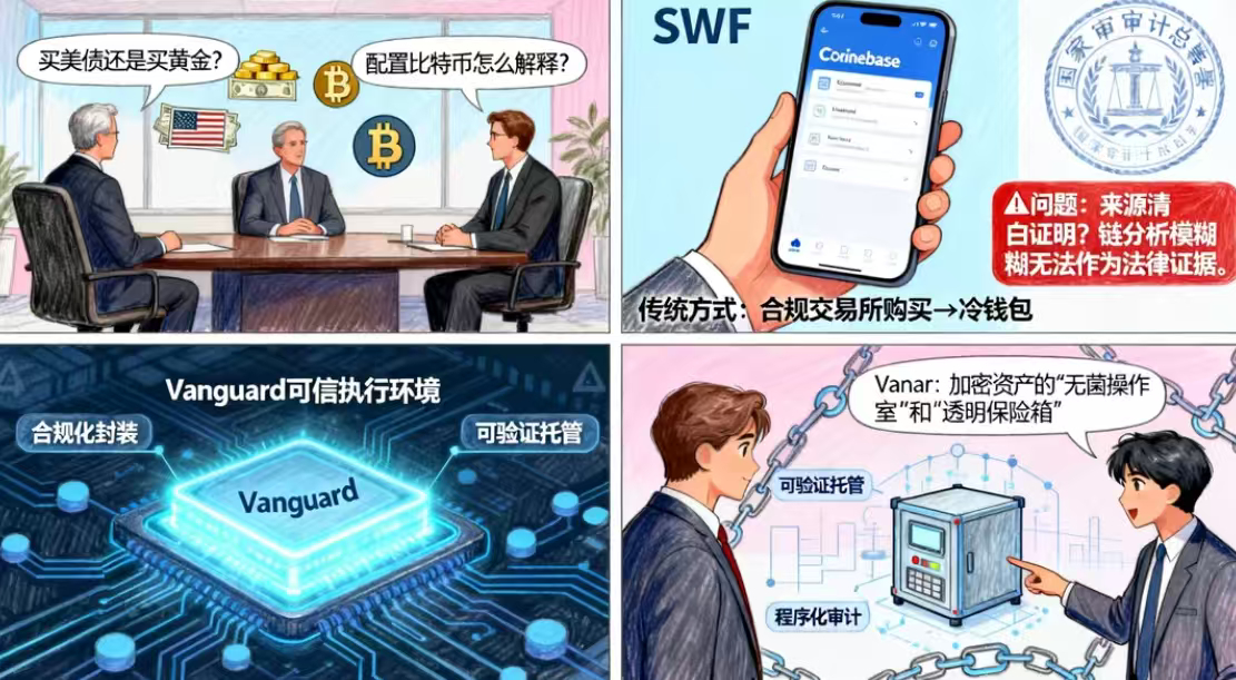 兄弟们,出大事了。你们有没有注意到最近一个微妙但可能炸裂的风向?我几个在主权财富基金和央行储备管理部门的朋友,最近聚会的聊天话题,从传统的“买美债还是买黄金”,偷偷转向了一个更敏感、也更头疼的问题:“如果我们想配置一点比特币或以太坊,该怎么向议会和公众解释,并且证明我们没有买错、没有被骗、没有违反任何制裁名单?” 对他们来说,投资加密货币最大的障碍根本不是技术或波动性,而是 “合规可解释性”和“资产可审计性” 的绝对缺失。你买一根金条,有重量、纯度证书和保管库记录。你买一个比特币,除了地址里的一串数字,你拿什么向国家审计总署证明它的“清白”与“存在”?