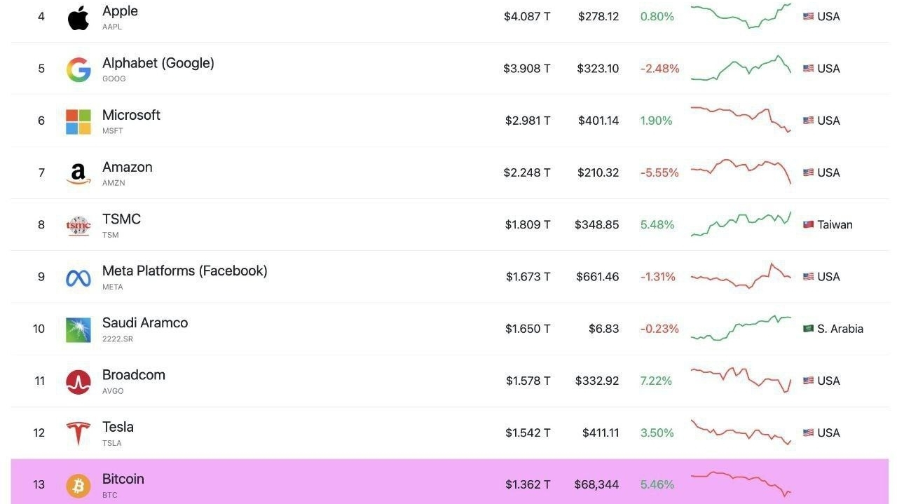 L'ultimo rapporto mostra che la capitalizzazione di mercato del Bitcoin (BTC) ha nuovamente subito un calo, posizionandosi ora al 13° posto tra le attività più grandi al mondo. Questa posizione colloca il Bitcoin sotto alcune grandi aziende globali e asset di copertura tradizionali come oro e argento. In quanto asset digitale più grande, il movimento della capitalizzazione di mercato del Bitcoin è influenzato dalla volatilità dei prezzi, dal sentiment macroeconomico e dalla dinamica delle politiche monetarie globali.