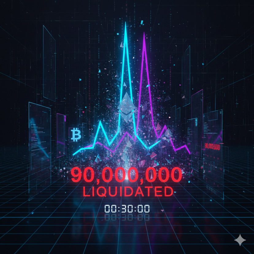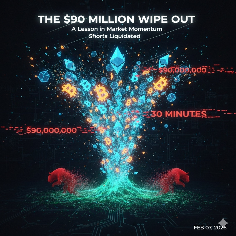 In a staggering display of volatility, the market just hit the "delete" button on $90,000,000 worth of Bitcoin and Ethereum short positions—all in the span of a single 30-minute window. While most of the world was grabbing a coffee or clearing their inbox, the bears were handed a very expensive reality check.