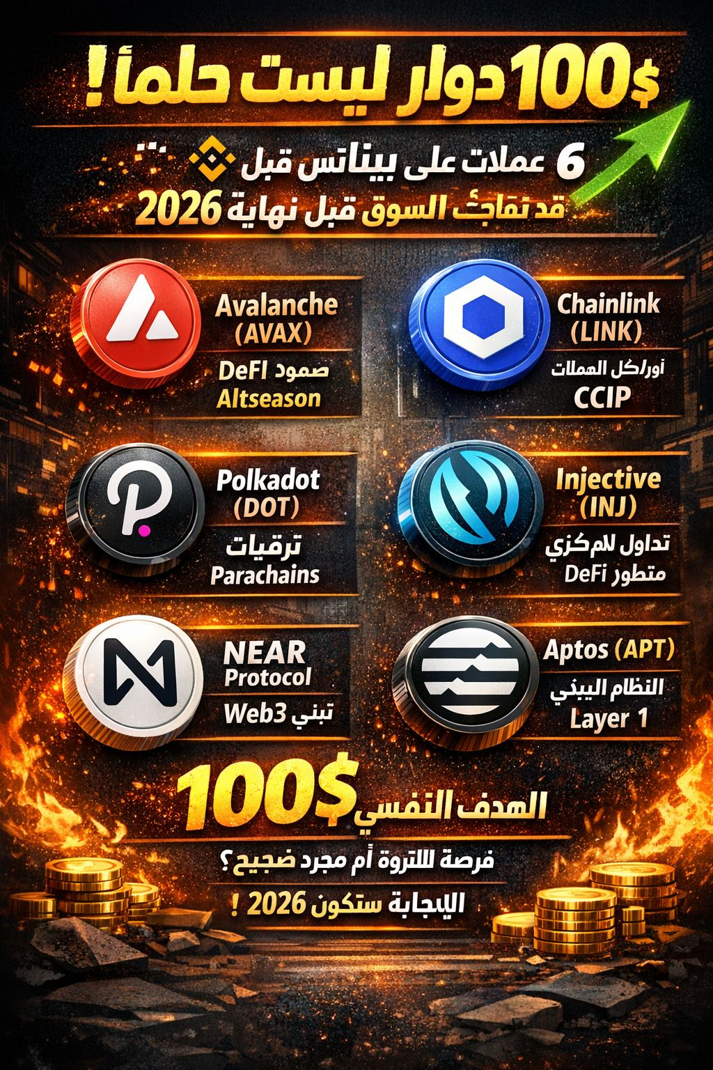نهاية 2026 قد تكون ذروة دورة صاعدة قوية، ومع عودة السيولة والمؤسسات، هذه عملات على Binance تملك واقعيًا فرصة لمس الرقم النفسي 100 دولار.
