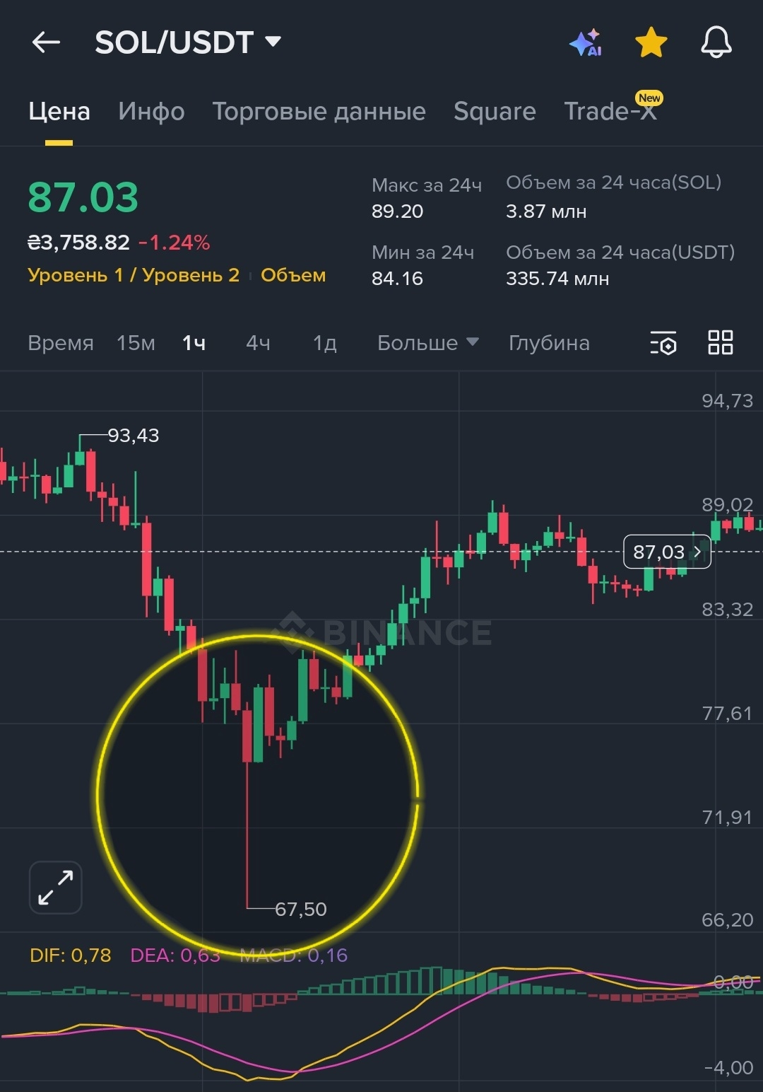 Dopo un secondo, il prezzo torna indietro...