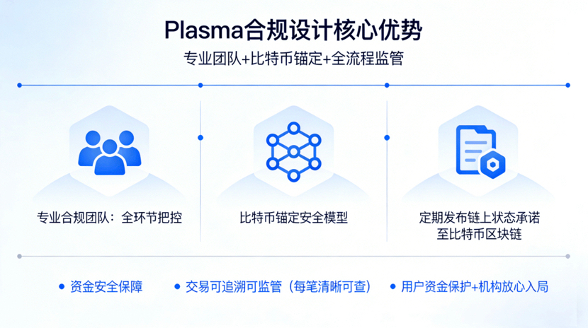 这背后是Plasma合规设计的底气。它有专业合规团队把控全环节,还采用比特币锚定的安全模型,定期把链上状态承诺发布到比特币区块链,既保资金安全,又符合监管“可追溯、可监管”的核心要求,每笔交易都清晰可查,既护用户资金,也让机构敢放心入局。