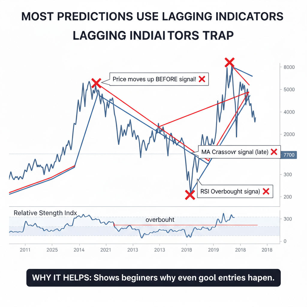 Strumenti comuni come RSI, MACD e medie mobili reagiscono dopo i movimenti dei prezzi.