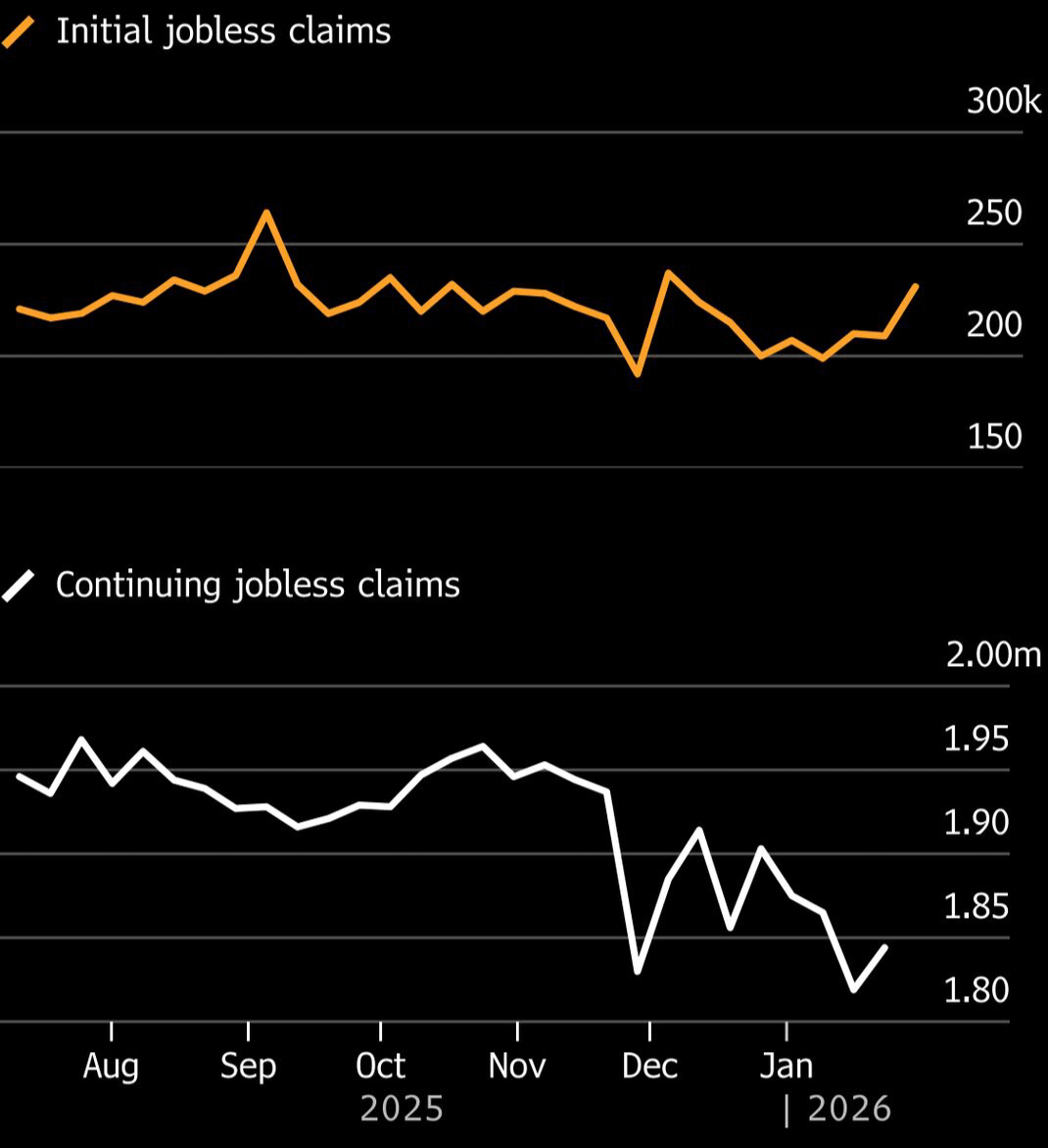 ⬆️ Giovedì (circa 12 febbraio) arriveranno due importanti comunicati: le richieste iniziali di sussidio di disoccupazione e le vendite di case esistenti di gennaio. Le richieste iniziali di sussidio di disoccupazione vengono pubblicate settimanalmente e forniscono un'idea immediata della salute del mercato del lavoro; si prevedono circa 230-235 mila richieste, e qualsiasi aumento significativo acuisce i timori di un rallentamento.