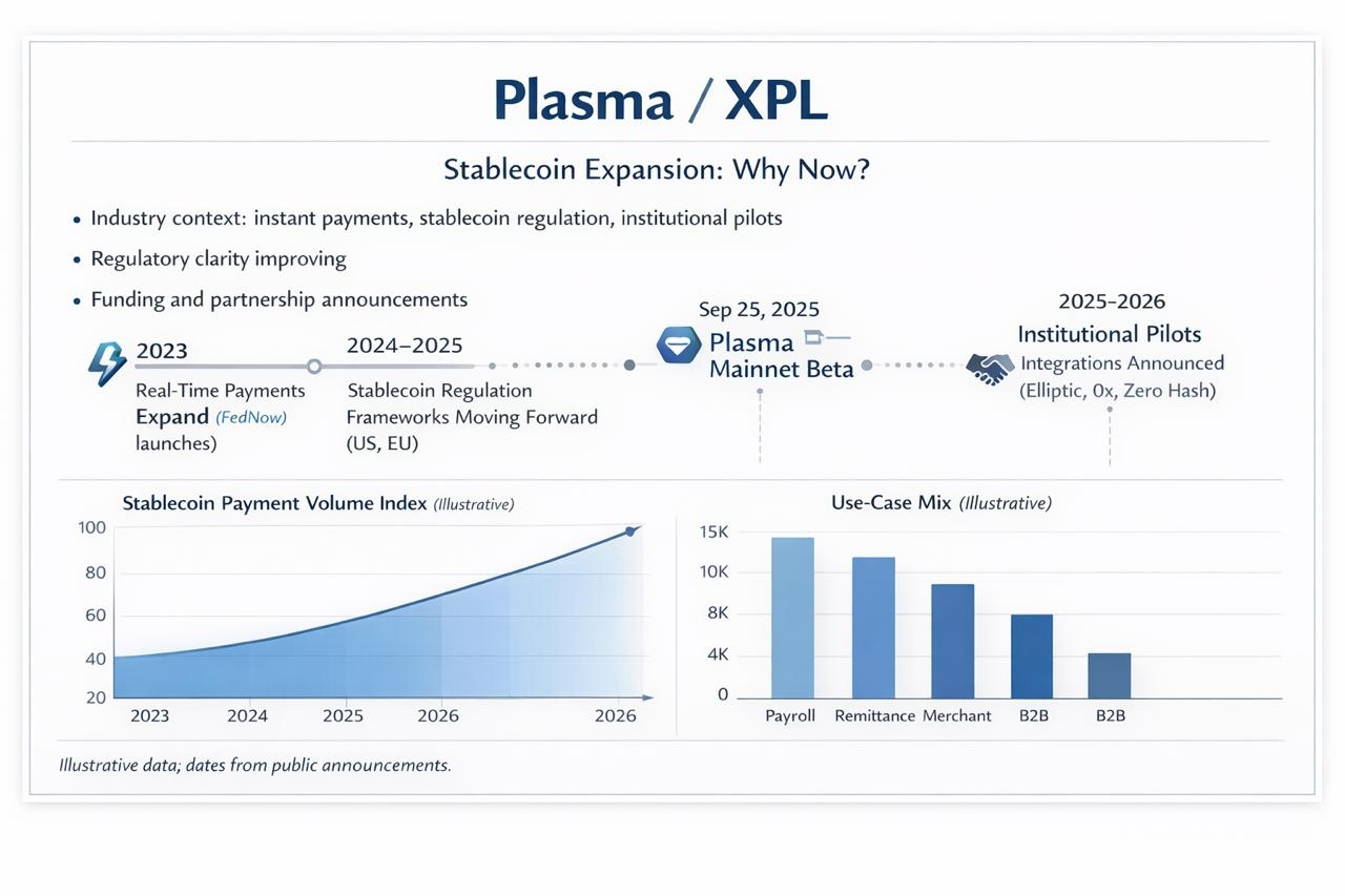 A few years ago, “digital dollars” still sounded like a science project: interesting, maybe inevitable, but easy to ignore if your paycheck cleared and your card worked. Now it feels more like plumbing. People don’t get excited about plumbing, but when it creaks—late payouts to contractors, weekend delays, cross-border transfers that behave like they’re traveling by fax—you suddenly care about the pipes. Stablecoins, the dollar-pegged tokens that live on blockchains, have become a workaround for some of those creaks. They’re also arriving at a moment when instant payments systems like the Fed’s FedNow have made “money moves now” feel like a normal expectation. That’s where the idea of “Plasma partnerships” lands for me. Plasma positions itself as a stablecoin-first Layer 1 built for USD₮ payments at scale. I’m skeptical by default, because every new rail says it will be faster than the last one. What changes the tone is the way the ecosystem is being stitched together around the rail. Elliptic has partnered with Plasma to support compliance monitoring. Zero Hash has announced support aimed at expanding access to stablecoin payments on the network. 0x says its Swap API is live on Plasma, a reminder that “payments” often need liquidity infrastructure nearby, even if the end user never sees it. Those deals are the connective tissue that turns a protocol into something operators can integrate.