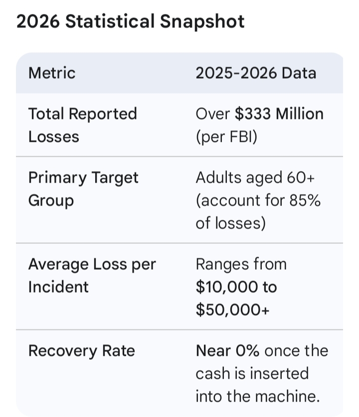 In early 2026, the FBI and multiple state Attorneys General have issued high-priority alerts regarding Crypto ATM (or Kiosk) scams, which resulted in over $333 million in reported losses last year alone.