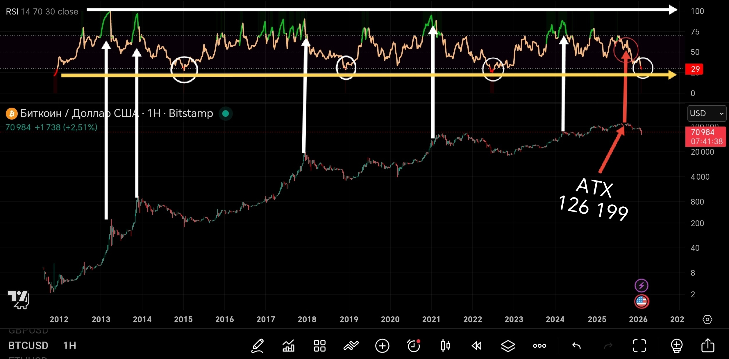 Но тренд RSI по циклам -серьёзный сигнал, а уровень 60 000 остаётся ключевым.
