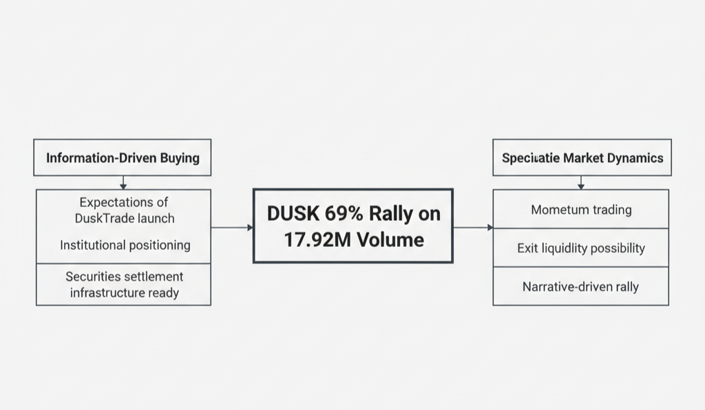 What would institutional buyers know that public doesn't? Probably regulatory approval timelines. If NPEX received AFM approval for DLT-TSS framework to operate blockchain securities settlement, that information might leak to connected participants before public announcement. Those participants would buy Dusk aggressively ahead of official news, creating exactly the 69% rally on 18 million volume we just saw.