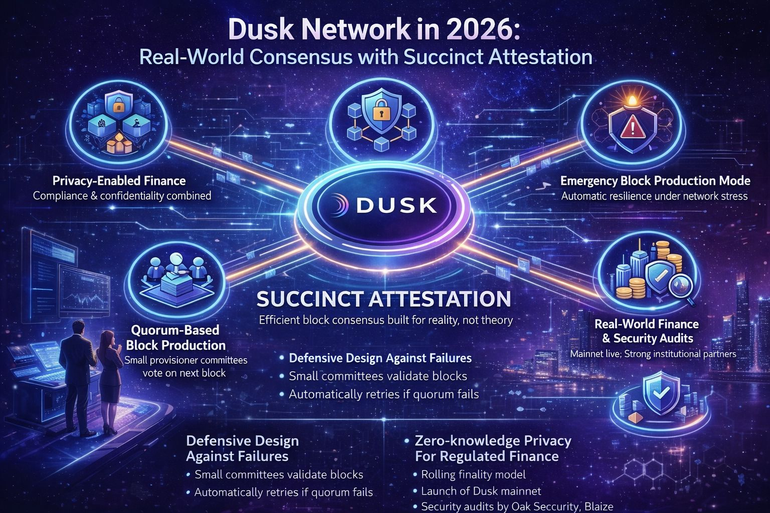 February 9, 2026 — If someone asked you what succinct attestation means in blockchain, the instinct might be to brace for math, diagrams, and complicated proofs. But in the case of Dusk Network, the idea is surprisingly grounded: it’s about getting consensus agreement on the next block in a way that’s fast, efficient, and resilient, all while staying decentralized and ready for real financial use cases.