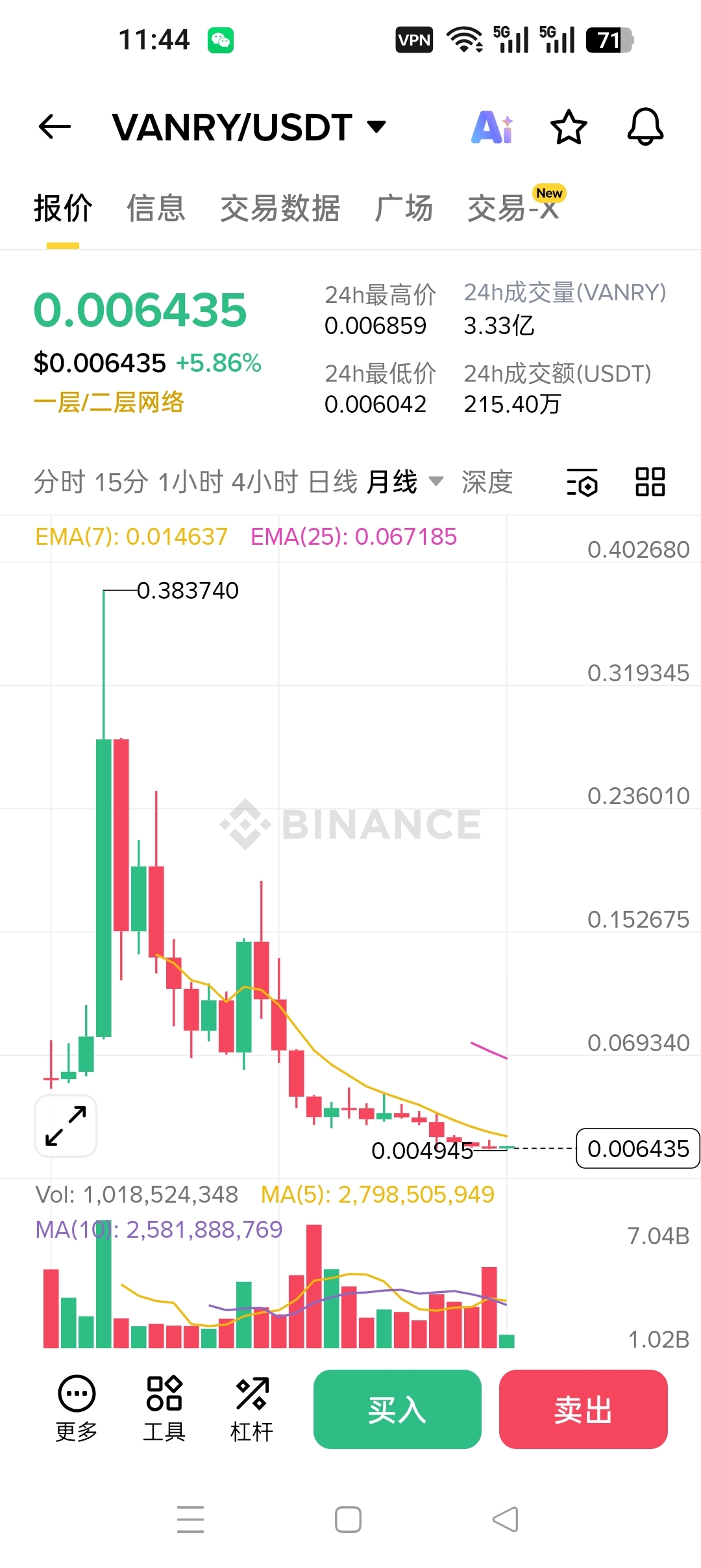 先说说行情数据,这是抄底最核心的参考。截至2026年2月9日,$VANRY 最新价格0.006211美元,24小时微涨0.83%,成交额622.44万美元,成交量突破100亿枚,相比前几天的低迷成交量明显放大,说明有资金开始悄悄进场了。从近7天走势来看,价格在0.005991-0.006778美元区间震荡,2月7日还摸到了0.006382美元的短期高点,回调时也没跌破前期低点0.005006美元,盘面韧性很足。