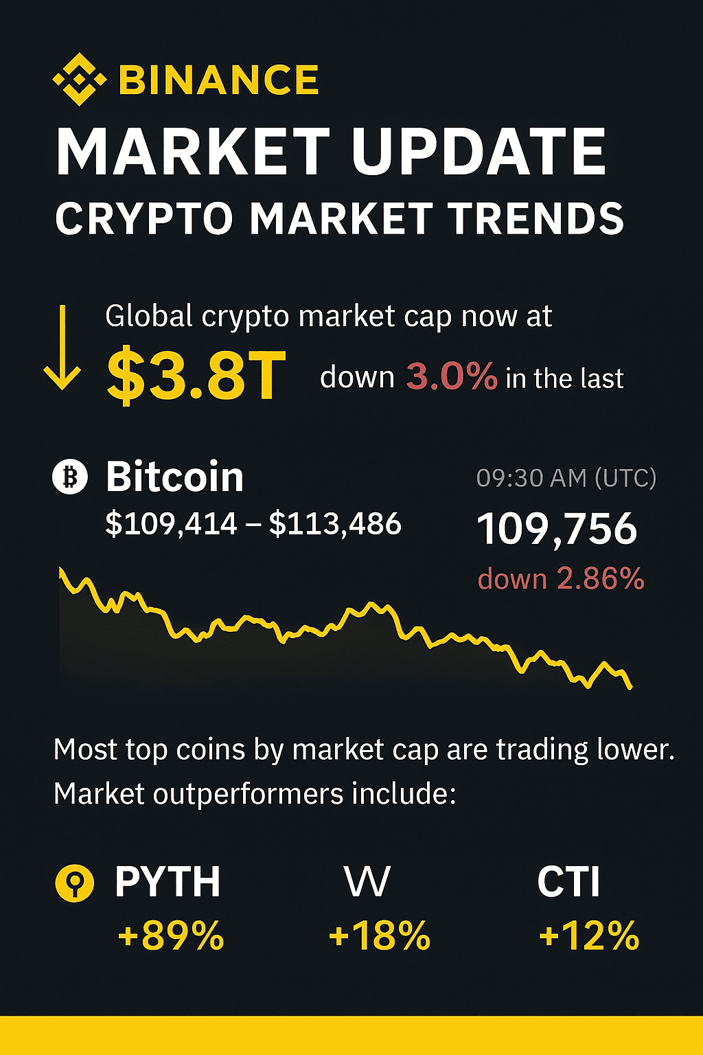 Il mercato globale delle criptovalute sta mostrando debolezza oggi, con la capitalizzazione di mercato totale a $3.8T, un calo del 3.0% nelle ultime 24 ore (dati di CoinMarketCap).