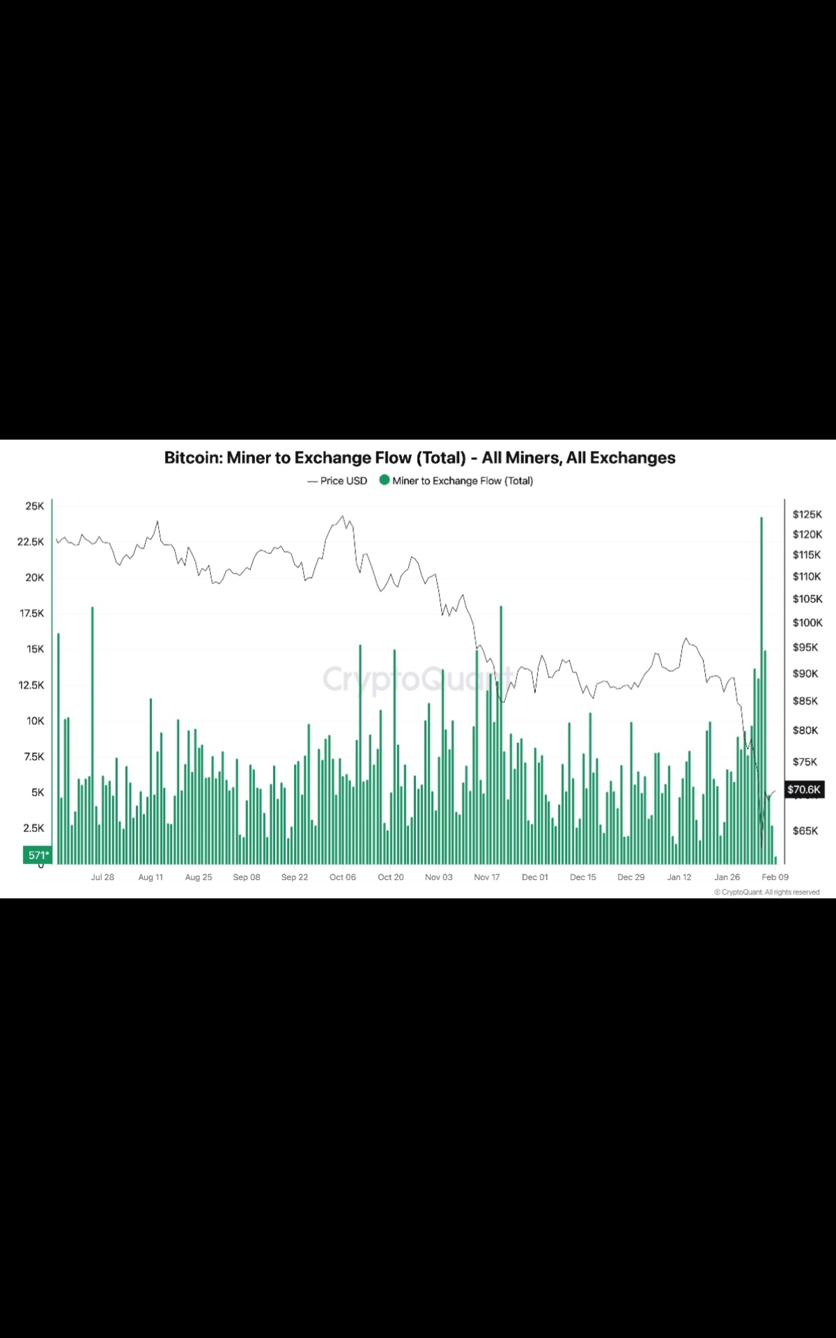 Miner inflows to exchanges reached their highest levels since 2024 in recent days, with February 5 alone seeing total deposits of 24,000 BTC.