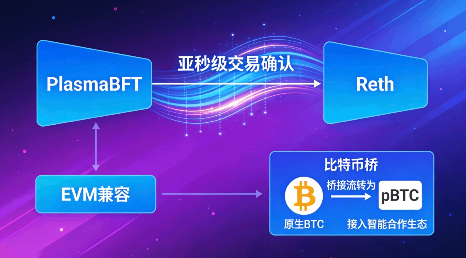 技术上的硬实力,更是Plasma的底气。它基于PlasmaBFT和Reth搭建的底层架构,能实现亚秒级的交易终局性,简单说就是转账、交易几乎秒确认,再也不用盯着屏幕等区块确认;同时还保持了EVM兼容,开发者不用重新学语言就能轻松部署应用,这也是它生态能快速发展的关键。更值得一提的是它的比特币桥,能把原生BTC铸造成pBTC引入智能合约生态,一下子打通了比特币和DeFi的壁垒,让沉寂的BTC流动性有了新的释放空间。