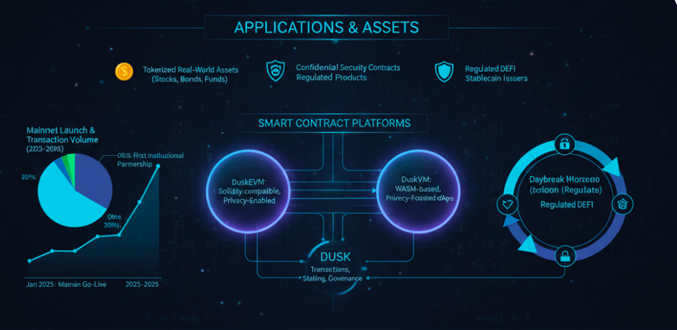 Dusk went live with its mainnet in January 2025, moving from testing to real transactions. Since then, it has seen real adoption. Exchanges and stablecoin issuers are exploring Dusk for regulated trading and settlement. Partnerships with oracle providers like Chainlink bring trusted market data to the blockchain. Developers are building applications that combine DeFi innovation with regulatory compliance. And all of this runs on the DUSK token, which powers transactions, staking, governance, and collateralized financial operations.