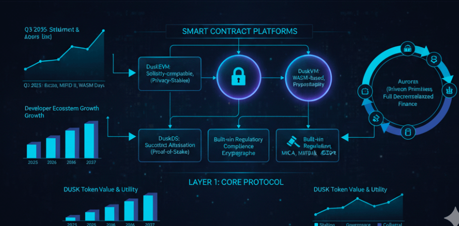 Looking ahead, Dusk is moving fast. New staking models, more confidential DeFi products, tokenized securities, and cross-chain integrations are all in the pipeline. Its phased roadmap — from Daybreak to Aurora — shows a carefully planned evolution toward full decentralized regulated finance. Dusk is not just a blockchain. It’s a new kind of financial infrastructure that speaks both the language of cryptography and the rules of the law. For anyone curious about the future of finance, Dusk is a story worth following because it’s not just dreaming about the future, it’s building it
