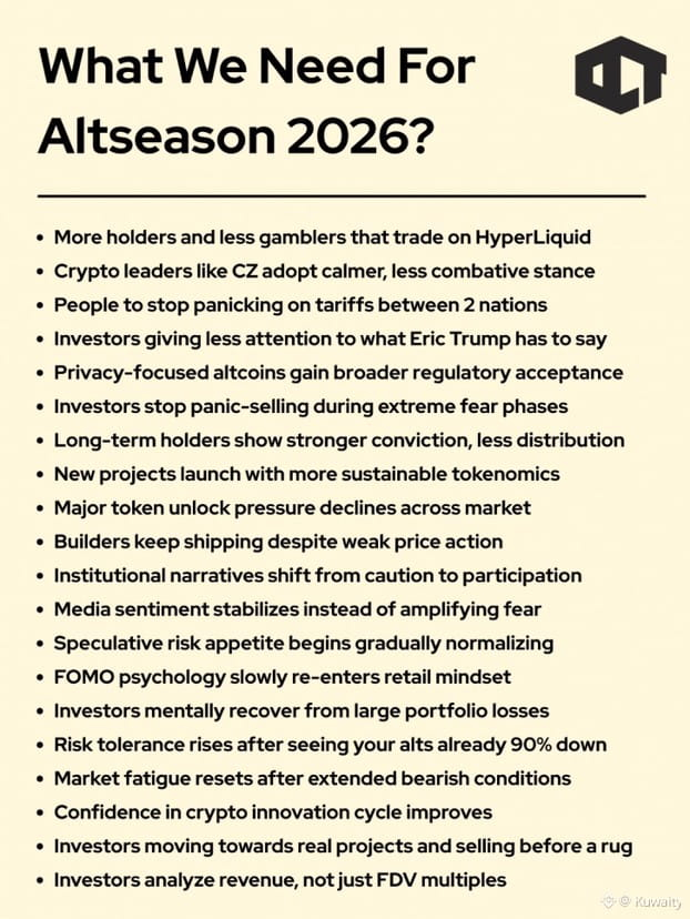 الأسواق تعاقب اليقين المفروض. المتداولون يحبون القصص المألوفة. والعقل يبحث عن الأنماط. لكن سوق العملات المشفرة يزدهر على عدم التماثل. عندما يتوقع كثيرون النتيجة نفسها، غالباً ما تنكسر. ولهذا تبدو مواسم العملات البديلة انفجارية. فهي تصل عندما يتلاشى الشك، لا عندما تبدو الرسوم البيانية مثالية.