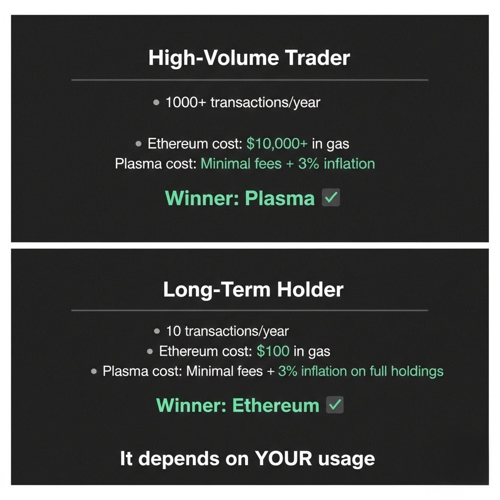 if you make 10 transactions a year but hold XPL long-term, you're paying inflation without benefiting from low fees