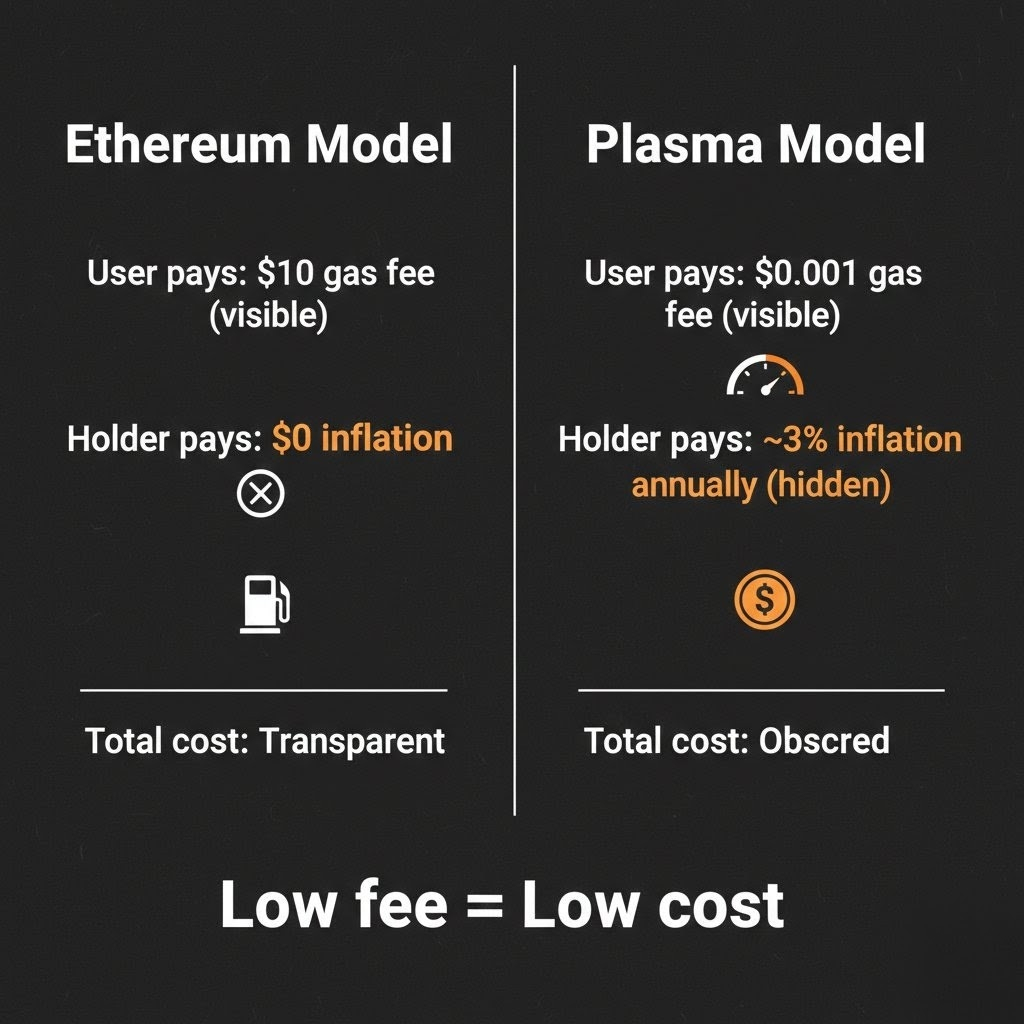 Plasma: markets itself on low fees while hiding the inflation cost