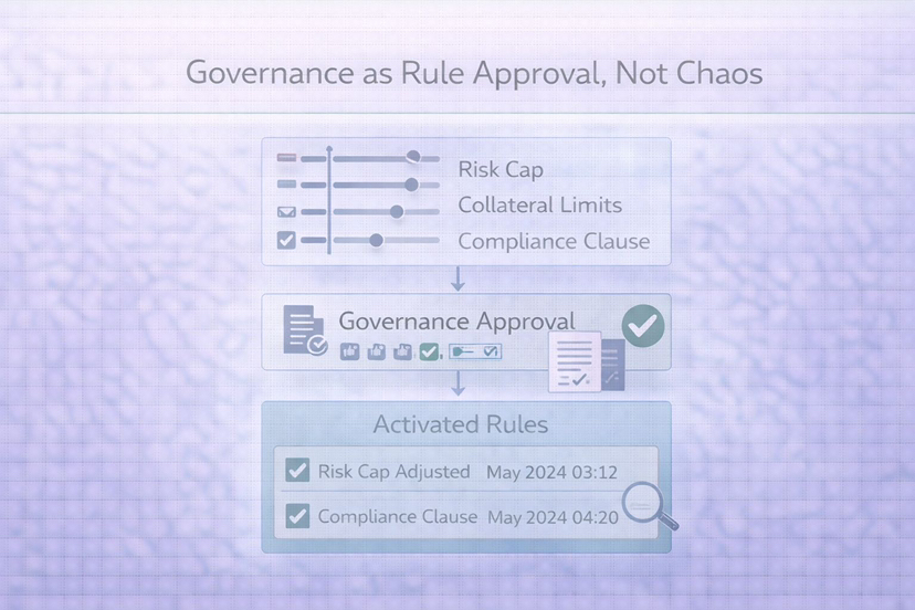 Molte blockchain si vantano della loro immutabilità e affermano che è una virtù di per sé. In effetti, però, il cambiamento non è la parte difficile della vera finanza: l'immutabilità lo è. Le normative cambiano ogni mese, i gruppi di rischio cambiano i limiti, i regolatori cambiano la formulazione e ciò che era accettabile ieri potrebbe non essere più così oggi. Anche in una singola azienda, le politiche cambiano a causa di un'interazione nei mercati, cambiamenti nei modelli di frode o l'apertura di una nuova regione.
