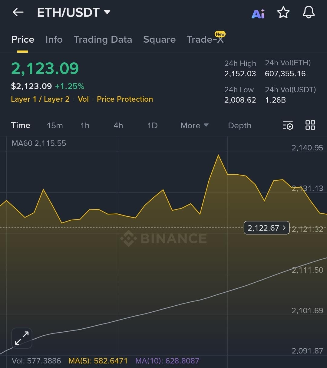 Ethereum sta negoziando attorno a $2.100, ancora ben al di sotto del suo precedente massimo storico vicino a $5.000. Si è ripreso bene nell'ultimo mese, ma la recente volatilità mostra che non è immune ai ritracciamenti. ETH continua a detenere un enorme valore di mercato e liquidità, il che gli conferisce stabilità, ma limita anche quanto velocemente può muoversi.