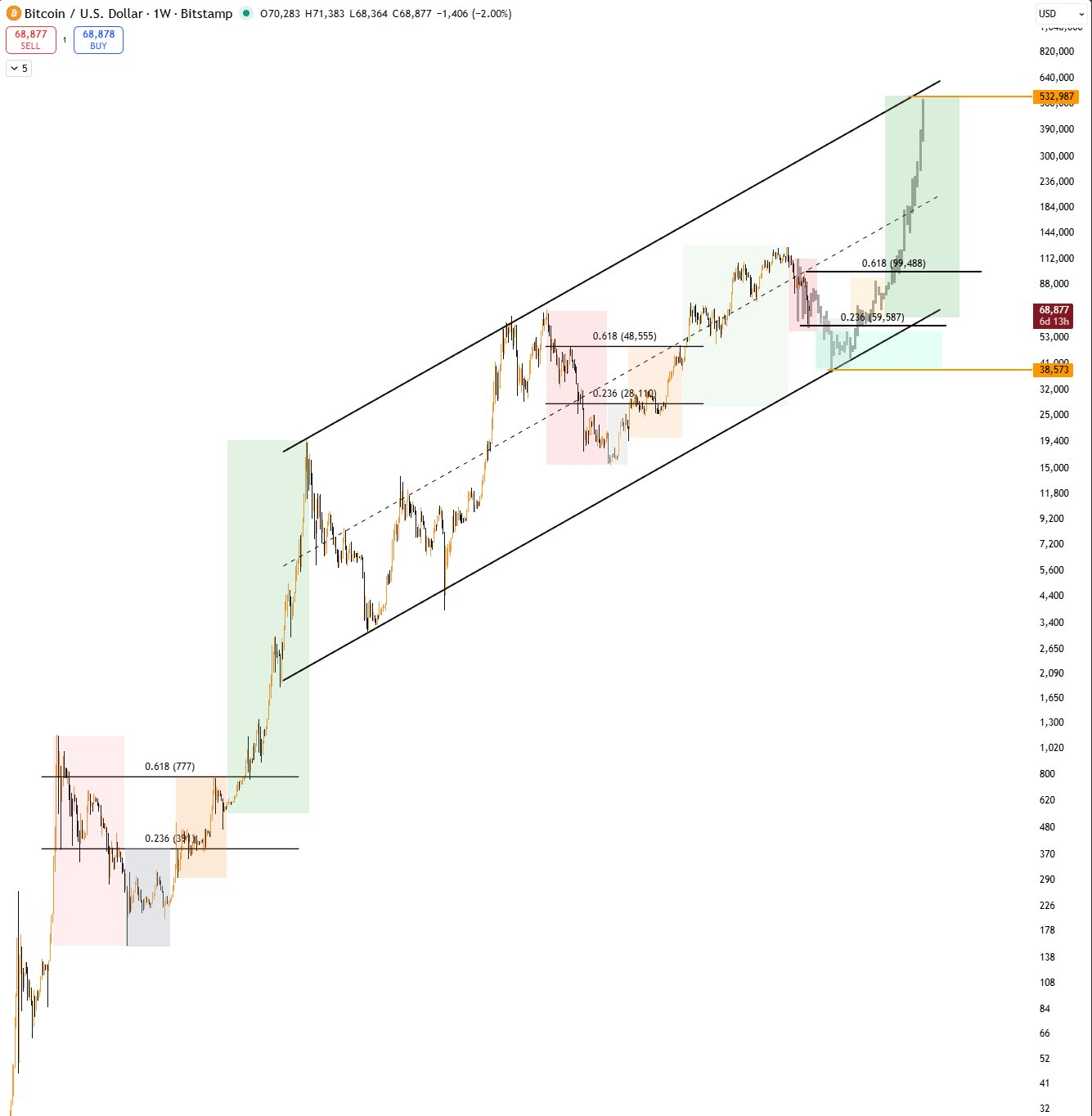Guardando il grafico settimanale, $BTC sta ancora negoziando all'interno di un canale ascendente a lungo termine che ha guidato il prezzo attraverso più cicli.