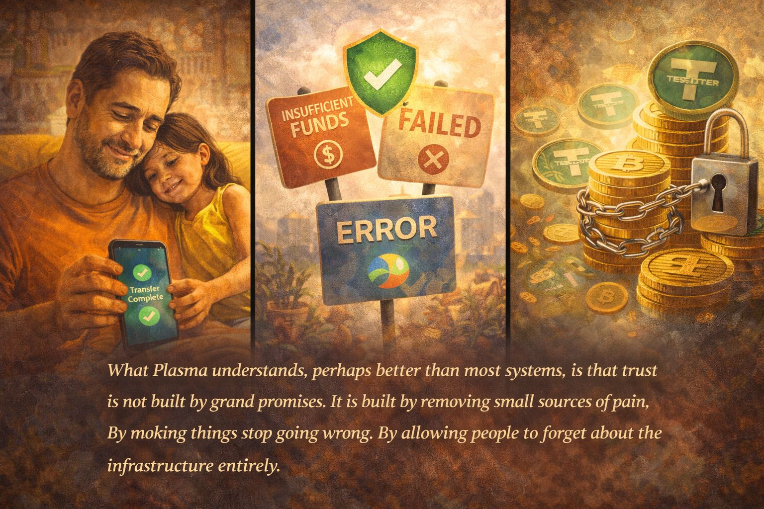 What Plasma understands, perhaps better than most systems, is that trust is not built by grand promises. It is built by removing small sources of pain. By making things stop going wrong. By allowing people to forget about the infrastructure entirely.