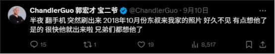 又是二宝,再次用一条推文把曾经赫赫有名的“黑庄东”拉回币圈视野。起因是AB Kuai.Dong @_FORAB 发文说易理华和 Garrett Jin 被怀疑是同一个出资人。然后宝二爷郭宏才 @ChandlerGuo 出来说确实是个在13年就买了币就进去了的然后最近几年才到香港就被周围的人割了的老哥们儿。